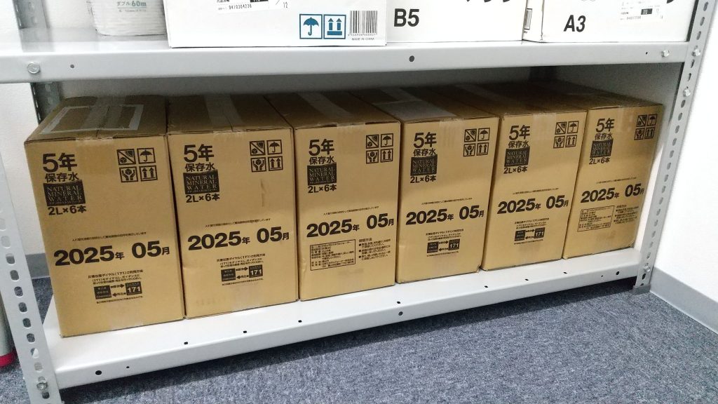 本社では災害用に備蓄を始めました。