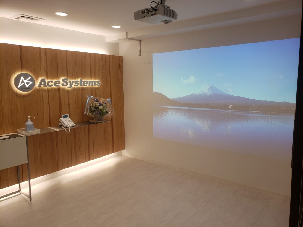 と、プロジェクターの設置や棚増設などにより、少し存在感のあるエントランスへと生まれ変わりました!
